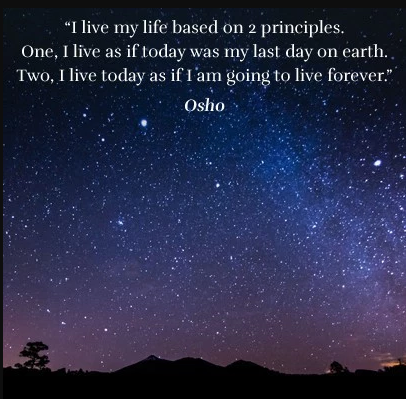 “I live my life based on 2 principles. One, I live as if today was my last day on earth. Two, I live today as if I am going to live forever.”