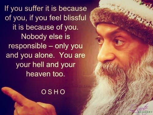 “If you suffer it is because of you, if you feel blissful it is because of you. Nobody else is responsible – only you and you alone. You are your hell and your heaven too.”